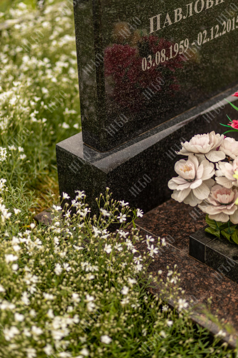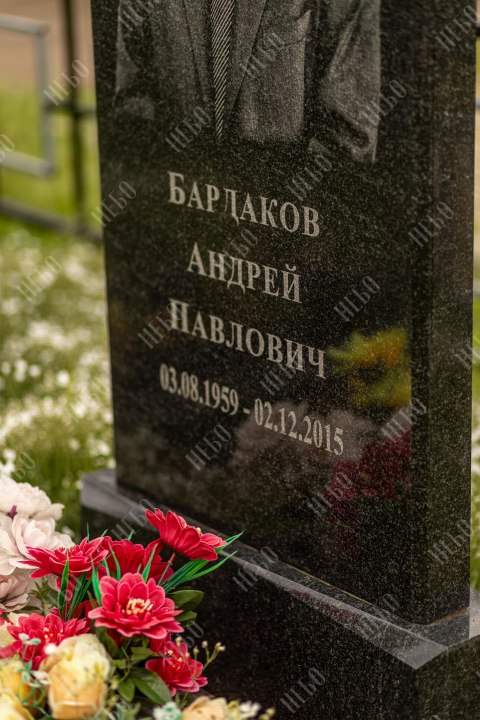 Для изготовления памятника использован гранит карельский габбро-диабаз. Это горная порода, отличающаяся прочностью и повышенной износостойкостью. Карельский габбро-диабаз устойчив к влаге и перепадам температур. Его плотность выше, чем у мрамора, поэтому именно его использовали при воздвижении вековых колонн исторических зданий. Гранитный памятник габбро-диабаз не требует особого ухода, обладает насыщенным черным цветом, что делает внешний вид памятника благородным и лаконичным.