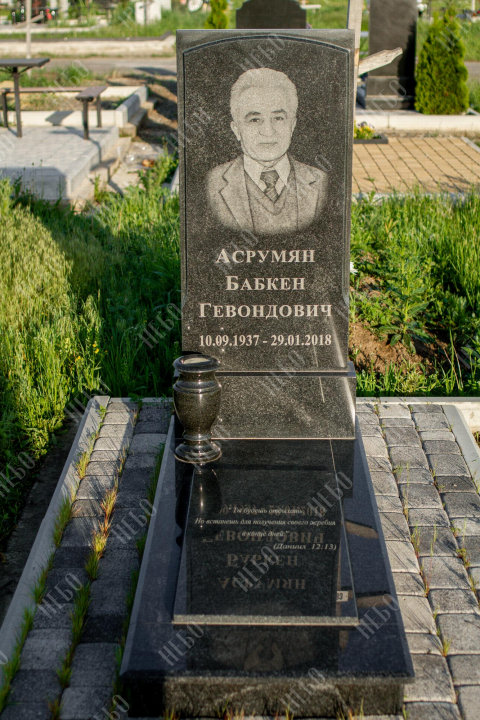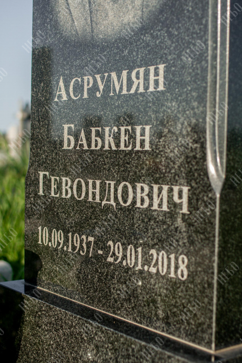 Для изготовления памятника использован гранит карельский габбро-диабаз. Это горная порода, отличающаяся прочностью и повышенной износостойкостью. Карельский габбро-диабаз устойчив к влаге и перепадам температур. Его плотность выше, чем у мрамора, поэтому именно его использовали при воздвижении вековых колонн исторических зданий. Гранитный памятник габбро-диабаз не требует особого ухода, обладает насыщенным черным цветом, что делает внешний вид памятника благородным и лаконичным.