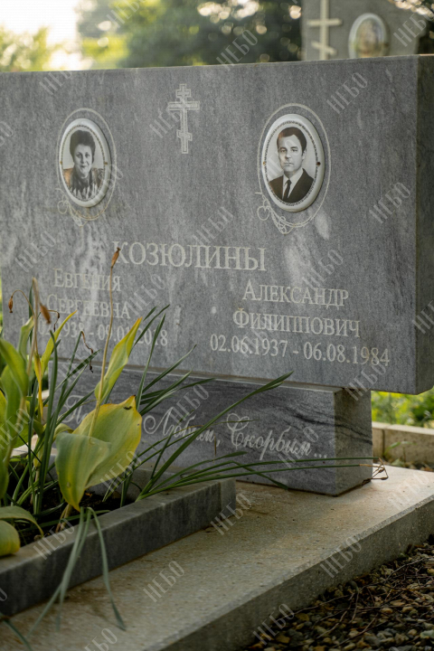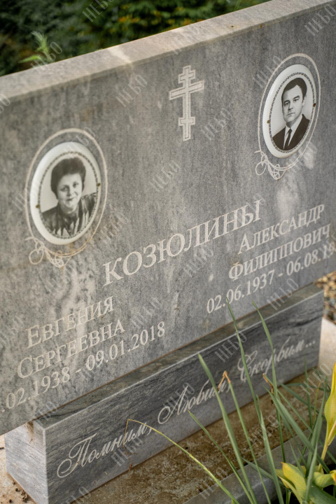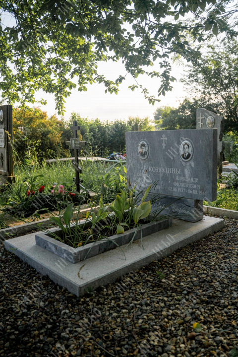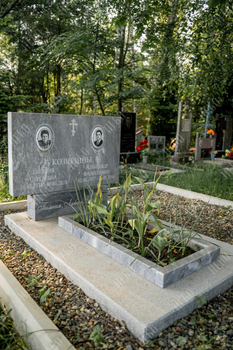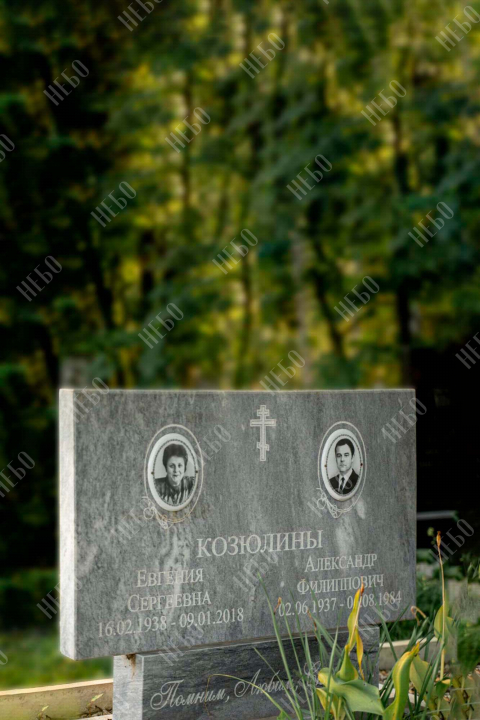 Горизонтальный памятник для родителей, выполненный в сдержанном лаконичном стиле. Невысокая надгробная стела прямоугольной формы содержит информацию об усопших и их фотографии. Она отлично сочетается с открытым надгробием. Такое решение является практичным, экономичным и значительно упрощает уход за ритуальным изделием. Размеры памятника тщательно проработаны специалистами, что гарантирует конструкции долговечность и надежность.